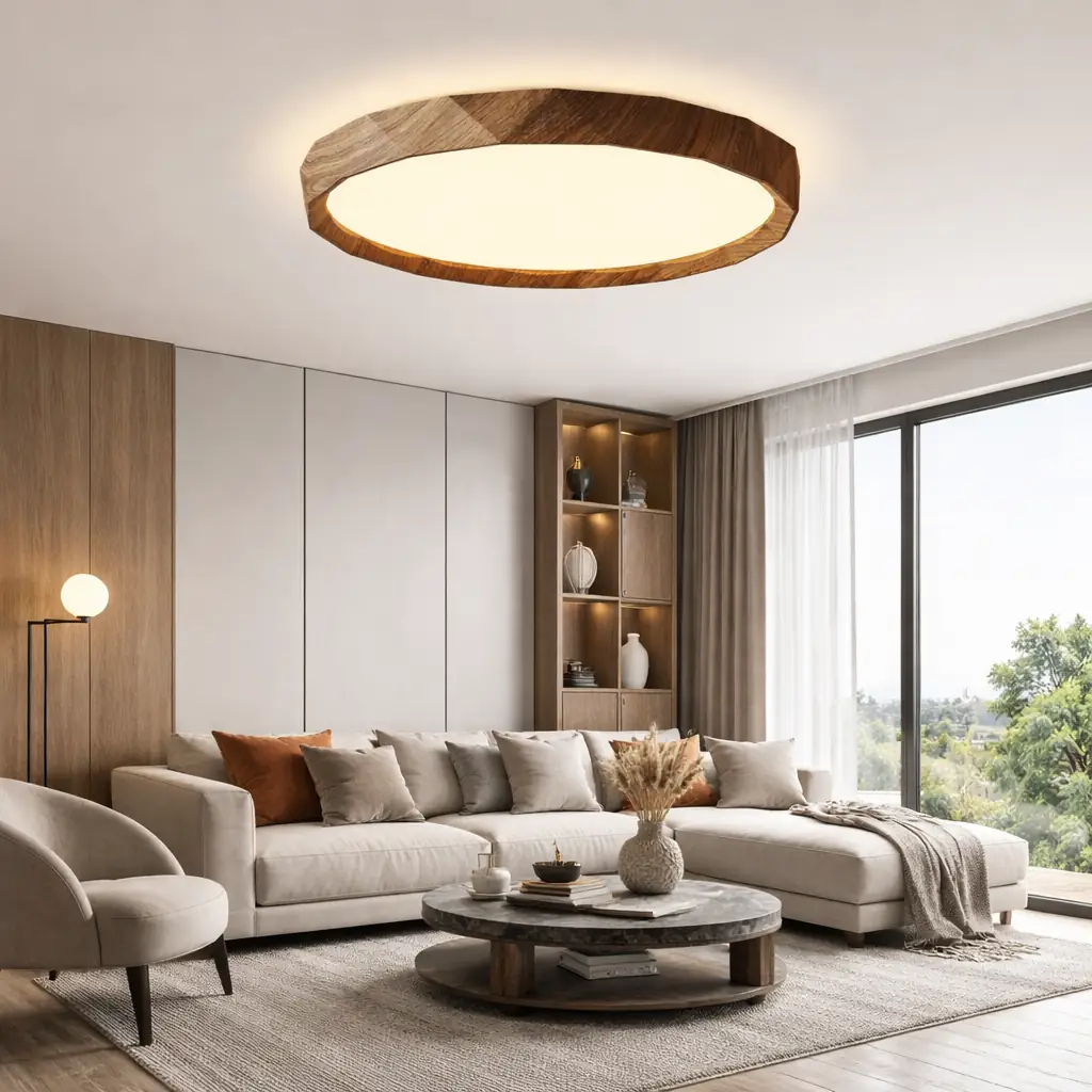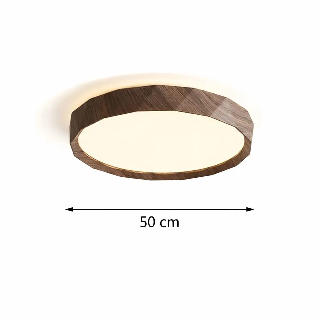 Antik Burma 26'Lık Koyu Ceviz Ahşap Desenli Plafonyer 3 Renk Ledli Hol Antre Koridor Banyo Balkon Avizesi Ledli Avize Armatür - Çap 26 cm